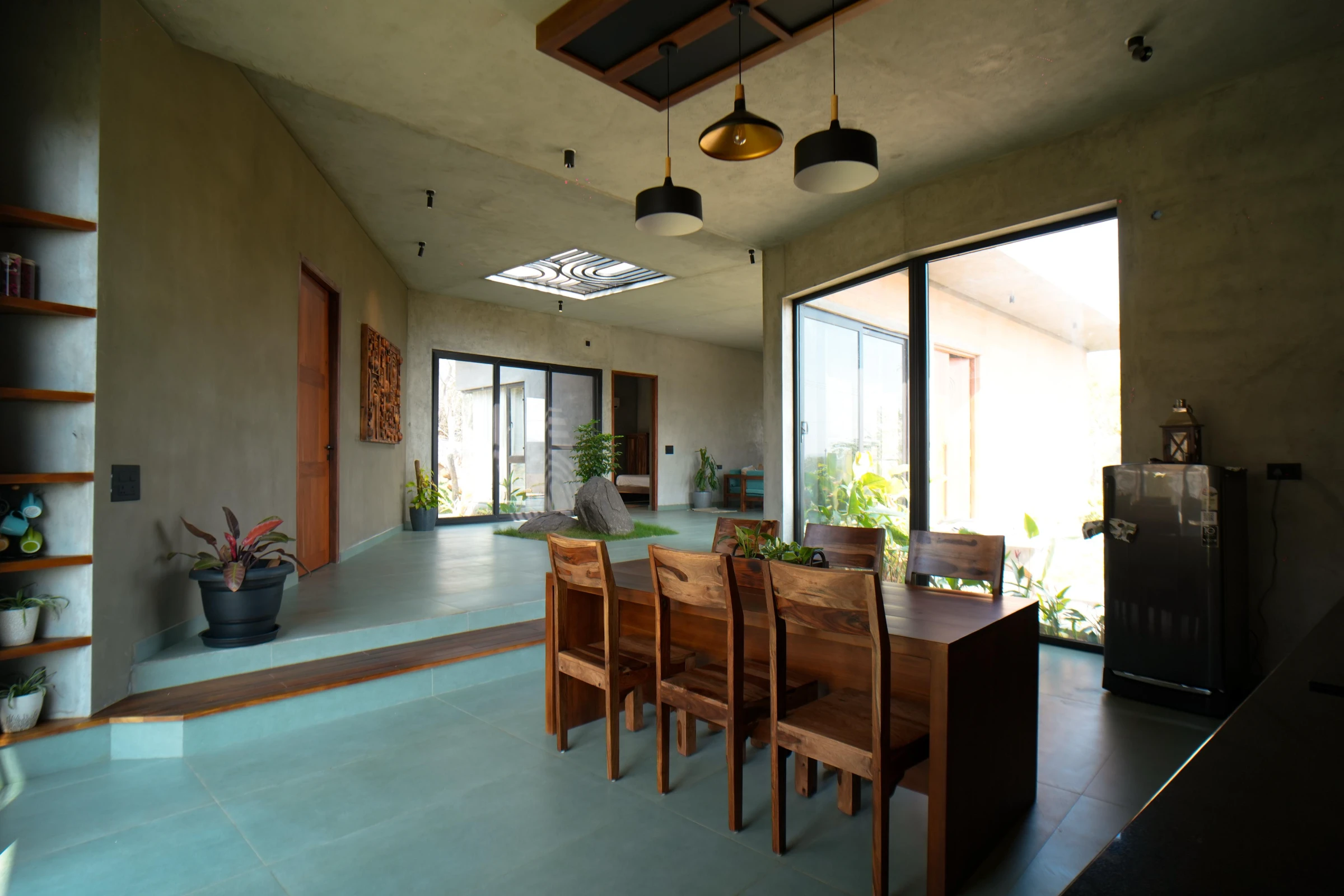 Designed to host up to six guests, with space for additional guests at a nominal fee, the home welcomes families, friends, and small groups seeking an immersive nature retreat. Every corner reflects warmth—from mud-plastered walls and artisanal décor to cosy indoor spaces that invite you to unwind with a book or meaningful conversations.