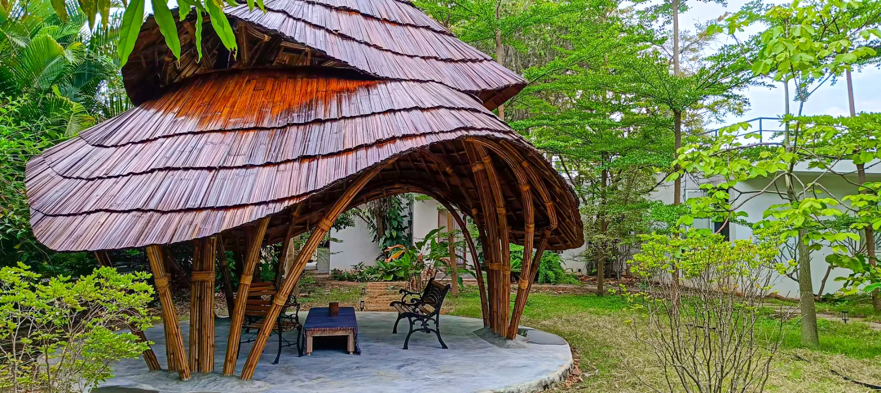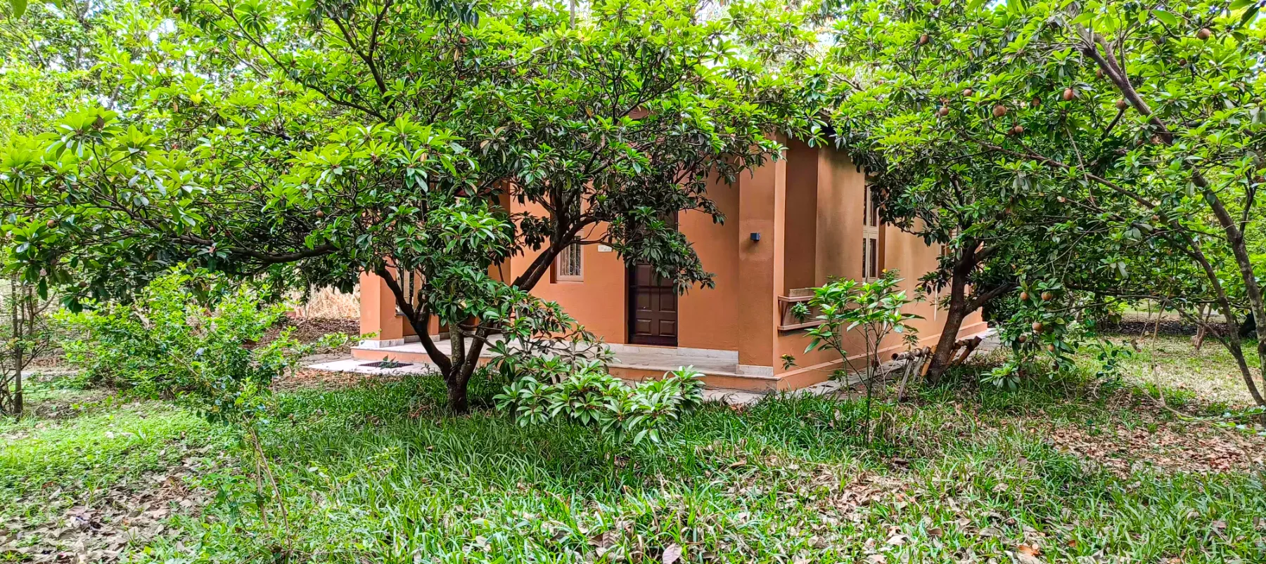 Welcome to our cozy studio tucked into a lush 3-acre farm — Kuteera, a private outhouse studio where fruit trees, the kitchen garden, and open skies make each morning feel restorative. The studio sleeps up to four with a comfortable double bed, a single bed, and an extra floor mattress, plus a compact kitchenette (induction stove, basic utensils, drinking-water pot) for simple meals. Unwind in the peaceful courtyard or read in the gazebo, play carrom or chess indoors, and enjoy views across paddy fields with a quiet lake just beyond the property. You’ll have access to the full 3-acre farm: stroll among fruit trees, harvest seasonal produce with caretaker help, meet the friendly ducks, chickens and turkeys in their designated area, or climb to the rooftop watch tower for stargazing. The cottage offers a private, intimate stay while still connecting you to the rhythms of farm life; the caretaker manages check-in and on-ground needs and the host is reachable by phone for anything else.