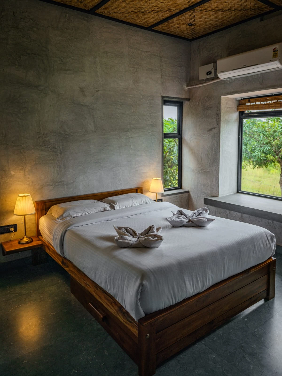 Step out onto the private balcony and take in sweeping greenery, perfect for sunrise coffee, unhurried conversations, or a peaceful evening wind-down. The experience goes beyond the villa itself, with complimentary breakfast at Ivy Café – Where Food Meets Soul, access to the interactive exotic pet park, and estate activities like horse riding, guided hikes, farm walks, and stargazing.