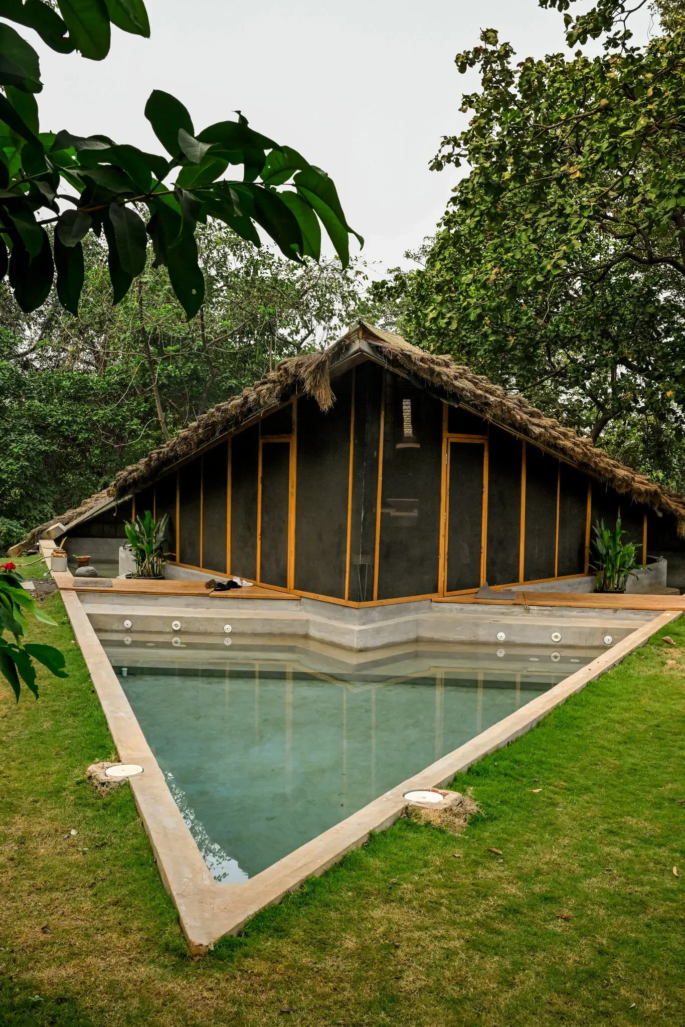 Suspended gracefully above a natural gorge, this extraordinary villa in Karjat offers an experience unlike any other — where architecture, forest, and flowing water come together in perfect harmony. Designed as a livable bridge, the home appears to float lightly between the surrounding greenery and a seasonal stream below, creating a setting that feels both surreal and deeply grounding.