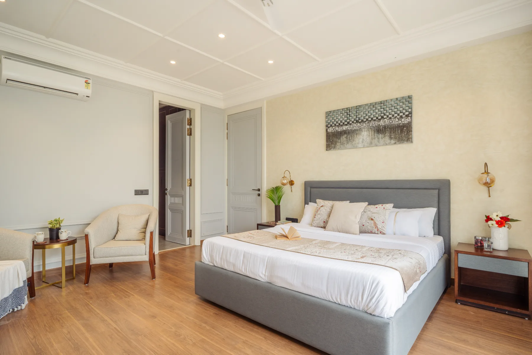 Each of the four bedrooms is designed with comfort and elegance in mind. Plush king-sized beds, premium linens, soothing colour palettes, and carefully curated décor create restful sanctuaries filled with natural light from large windows.